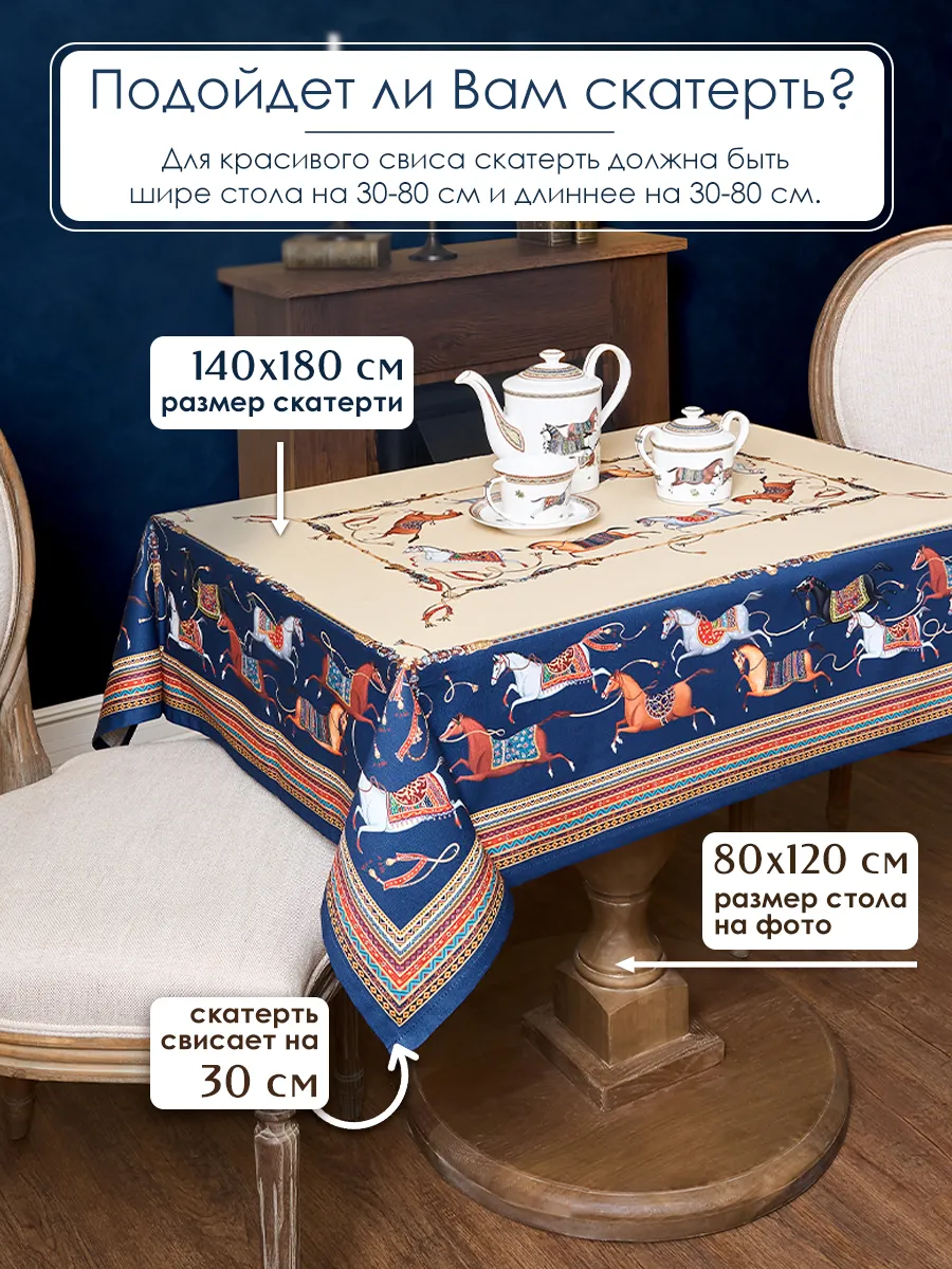 Скатерть изготовлена из плотной хлопковой ткани с пропиткой. Плотность ткани составляет 190 г\м2, она имеет приятную структуру.