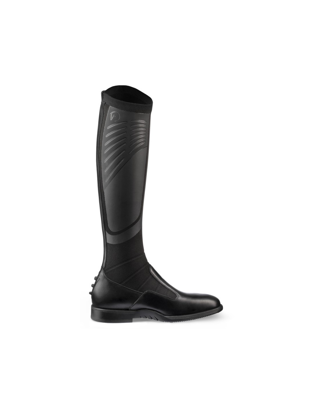 В то же время, крой без застёжки-молнии и компрессионная ткань обеспечивают тесный контакт с лошадью, чем когда-либо прежде. Этот материал также обладает тем преимуществом, что он легкий и дышащий. Кроме того, сапоги оснащены подошвой с амортизаторами ударов. Задняя часть пятки оснащена шпорной скобой, которая позволяет расположить шпоры на желаемой высоте. Наконец, следует отметить, что шикарный и спортивный, авангардный дизайн этих сапог представляет собой главное преимущество этой модели последнего поколения.