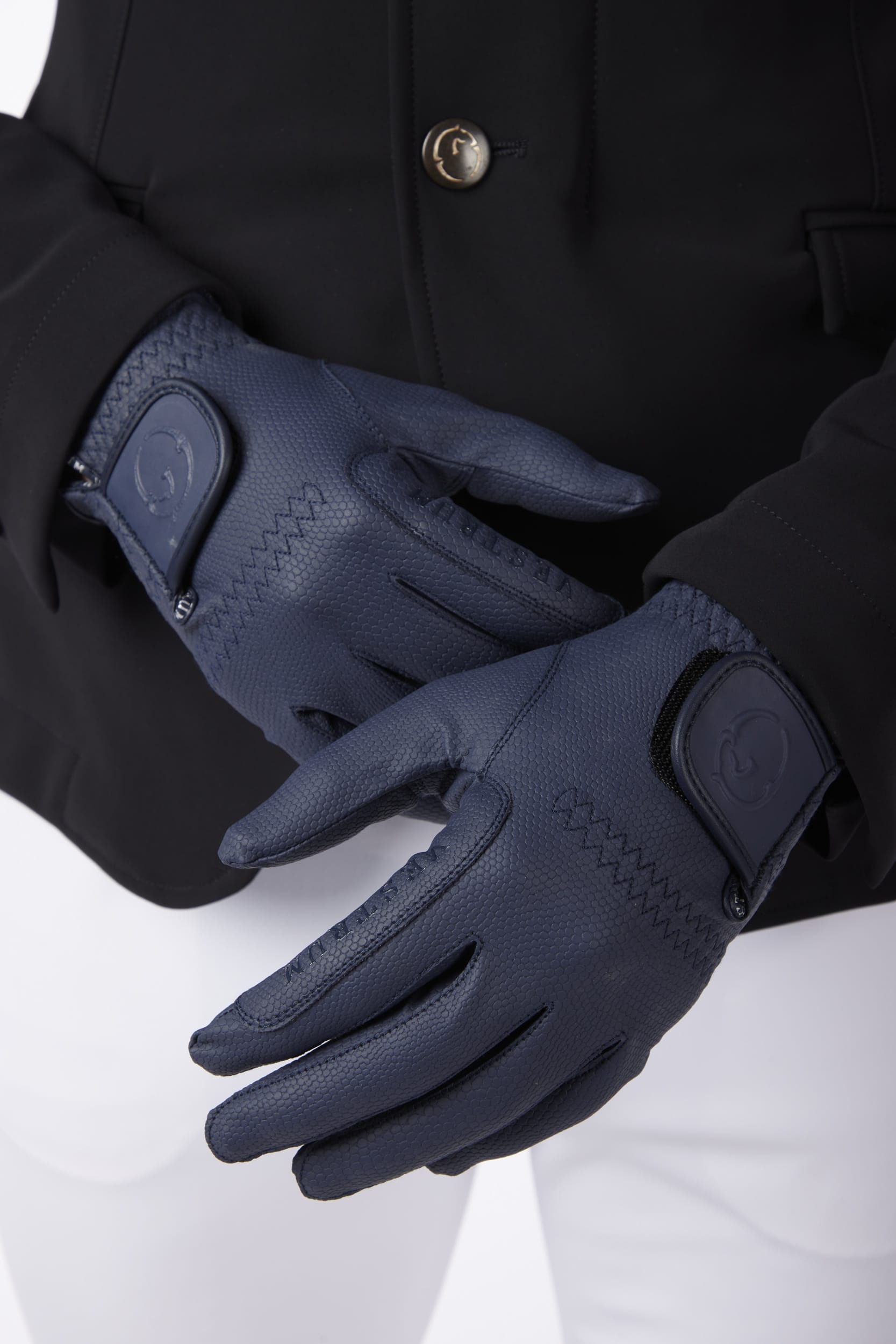 Перчатки унисекс из экокожи с логотипом Vestrum на тыльной стороне ладони и окантовкой с логотипом. Модель с плотной посадкой.