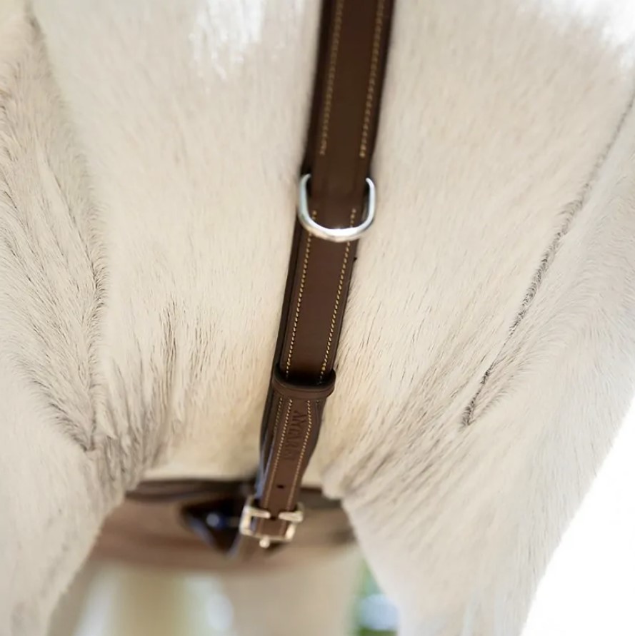 Крепление по обе стороны седла к ремням с помощью эластичной пряжки, установленной на регулируемой кожаной части.
