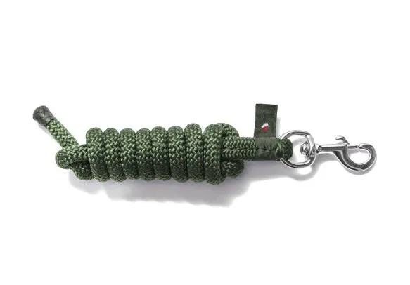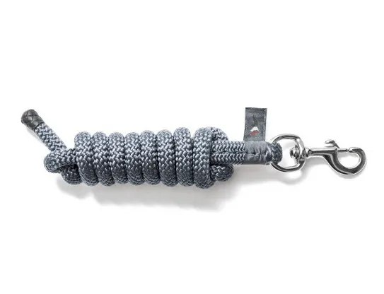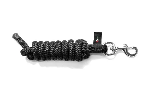 Прочный чембур от Equiline. Имеет классический серебряный карабин. Пластиковый конец предотвращает расплетание волокон. Украшен этикеткой бренда.