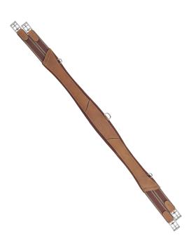 Асимметричная прыжковая подпруга анатомической формы с разрезным концом из тисненой кожи с эластичными вставками с обеих сторон. Удлиненный задний эластичный ремешок для облегчения крепления. С кольцами для натяжных поводьев