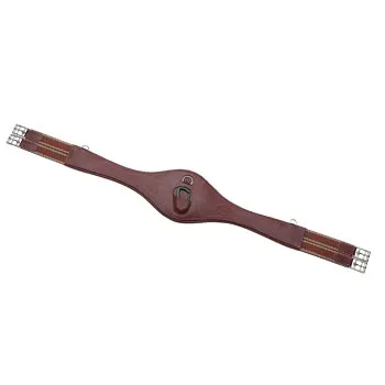 Кожаная подпруга для конкурных седел с небольшим фартуком, имеет двухсторонние резиновые вставки, которые положительно сказываются на свободе грудных мышц лошади и обеспечивают отличное прилегание седла к спине. Подпруга оснащена крючком, позволяющим напрямую прикреплять дополнительные поводья, она очень прочная, изготовлена из пропитанной кожи, препятствующей впитыванию пота. Изысканная прострочка подчеркивает уникальность продукта, протестирована и рекомендована профессионалами.