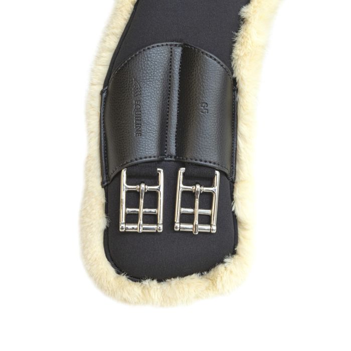 Выездковая подпруга из неопрена с усиленной резинкой с обеих сторон и центральным кольцом. Внутренняя часть обшита эко-овечьей шерстью для обеспечения максимального комфорта лошади.