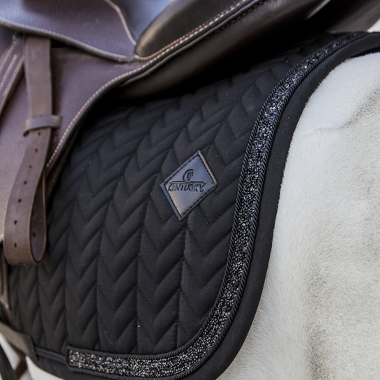 Вальтрап Glitter Stone обеспечивает отличную амортизацию между спиной пони и седлом, защищая от трения. Эта модель имеет уникальное стегание и потрясающий блестящий кант. У вальтрапа нет ремней для крепления к седлу, только нейлоновый ремешок для подпруги. Его можно стирать в машинке при 30°, без сушки. Мы советуем вам использовать мешок для стирки, чтобы избежать повреждения канта.
