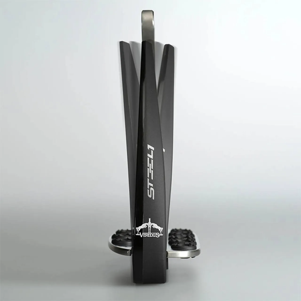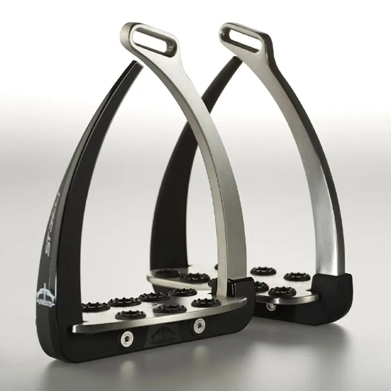 Новые безопасные стремена Veredus: материал из нержавеющей стали обеспечивает идеальный вес и уникальные характеристики. Особая форма и материал дужек позволяют быстро освободить стопу во всех направлениях, что является важным фактором безопасности в критических ситуациях. Поэтому отдел исследований и разработок Veredus разработал сверхбезопасное стремя с современным, чистым дизайном, красивым и безопасным во всех отношениях.