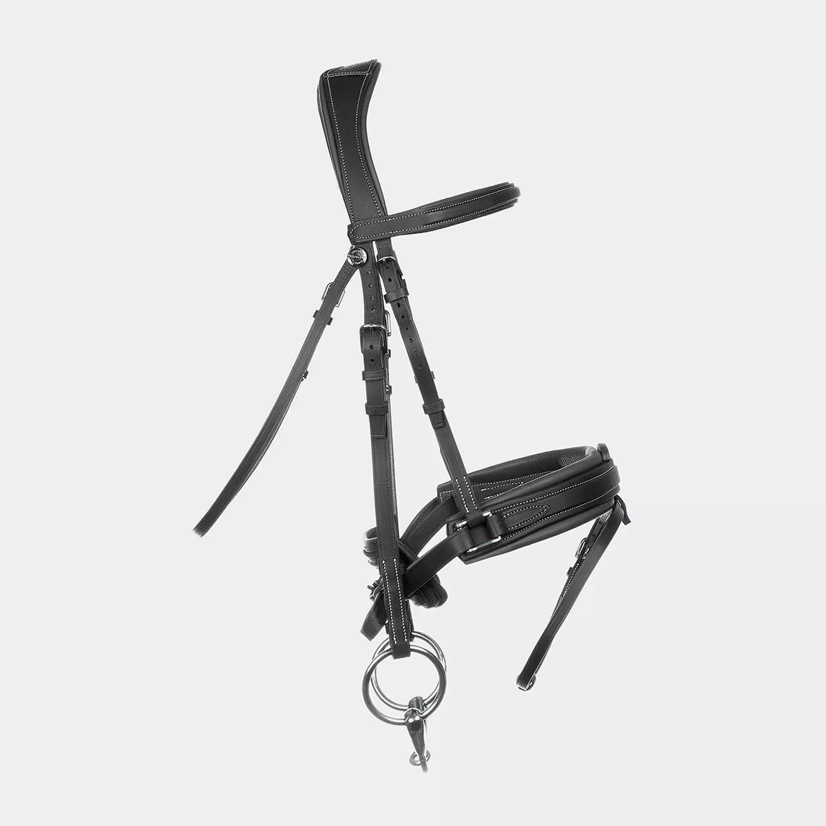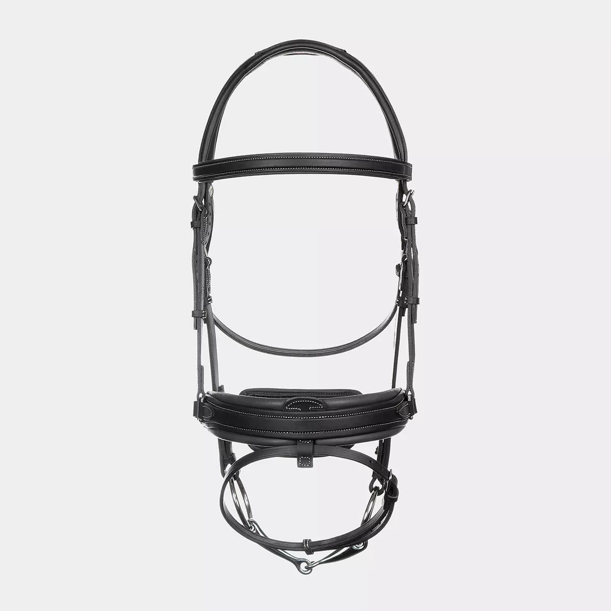 Уздечка Biarritz имеет тонкий эргономичный затылочный ремень с подкладкой из телячьей кожи. В затылочном ремне есть отверстие для освобождения затылочной связки. Налобник снабжен эластичными петлями, которые соприкасаются с височной костью, сводя к минимуму давление и одновременно повышая точность расположения.