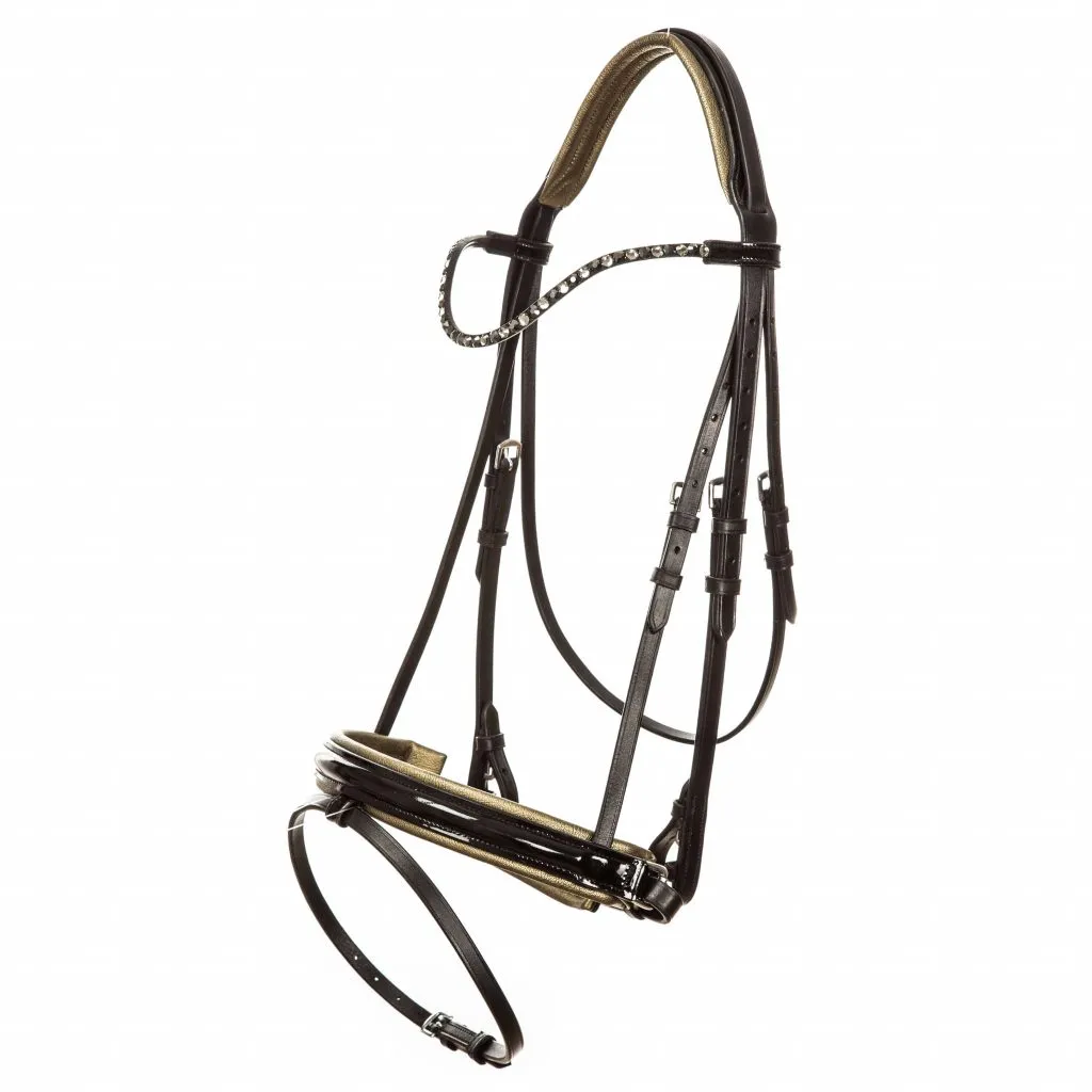 Уздечка Di Layla изготовлена из красивой качественной кожи и имеет роскошный вид за счет волнистой передней части со стразами. С мягкой подкладкой на капсуле и затылке.
