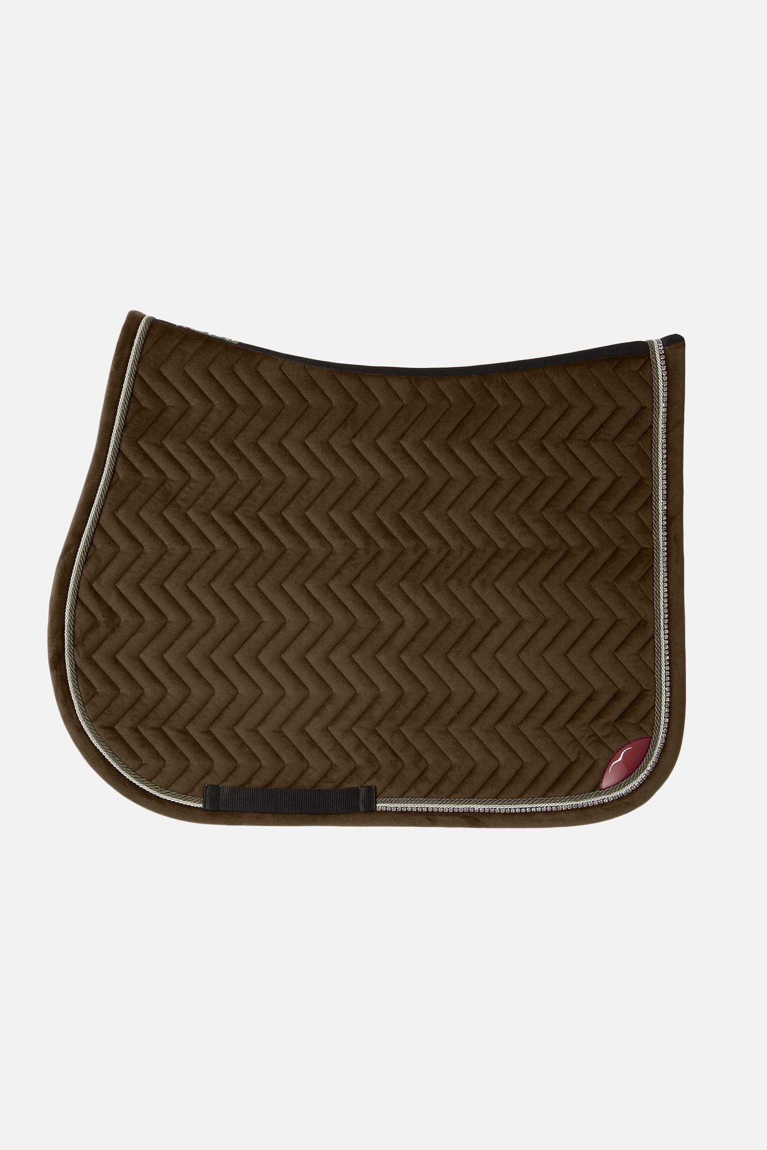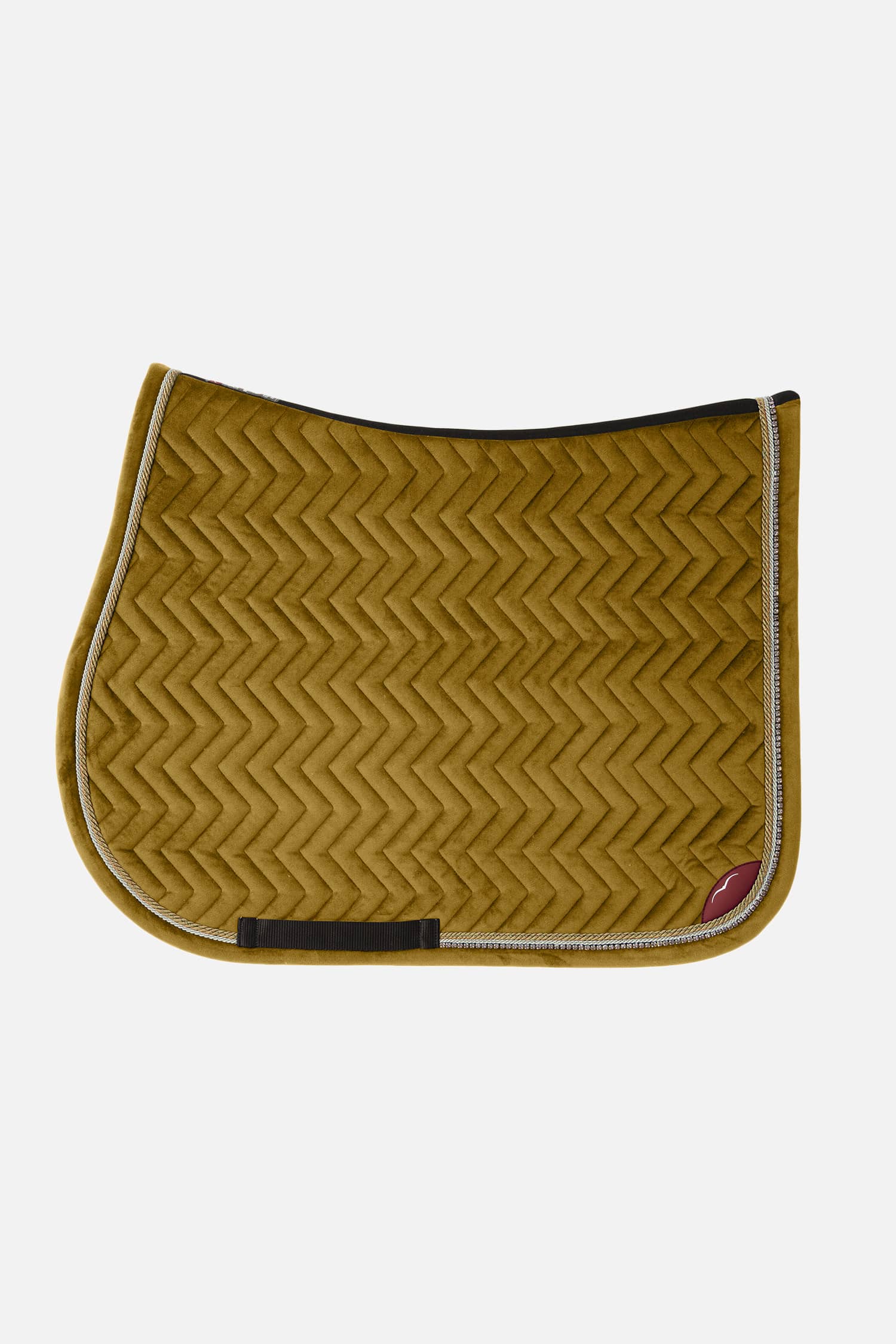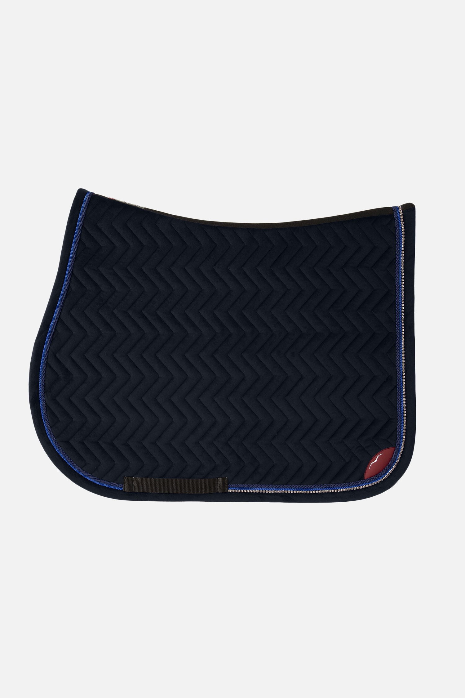 Изысканный бархатный вальтрап с элегантным геометрическим орнаментом. Окантовка и переплет из страз в тон. Внутренняя ткань обработана таким образом, чтобы обеспечить максимальный комфорт лошади. Во избежание возможных аллергических реакций на красители, она не подвергалась химической окраске. Внутренняя часть выполнена из технического материала, способного поглощать удары и быстро выводить пот наружу. Это изделие сохраняет свои характеристики и размеры даже после многократного использования и стирок. Этикетка из нубука с логотипом на обеих сторонах. Классический дизайн.