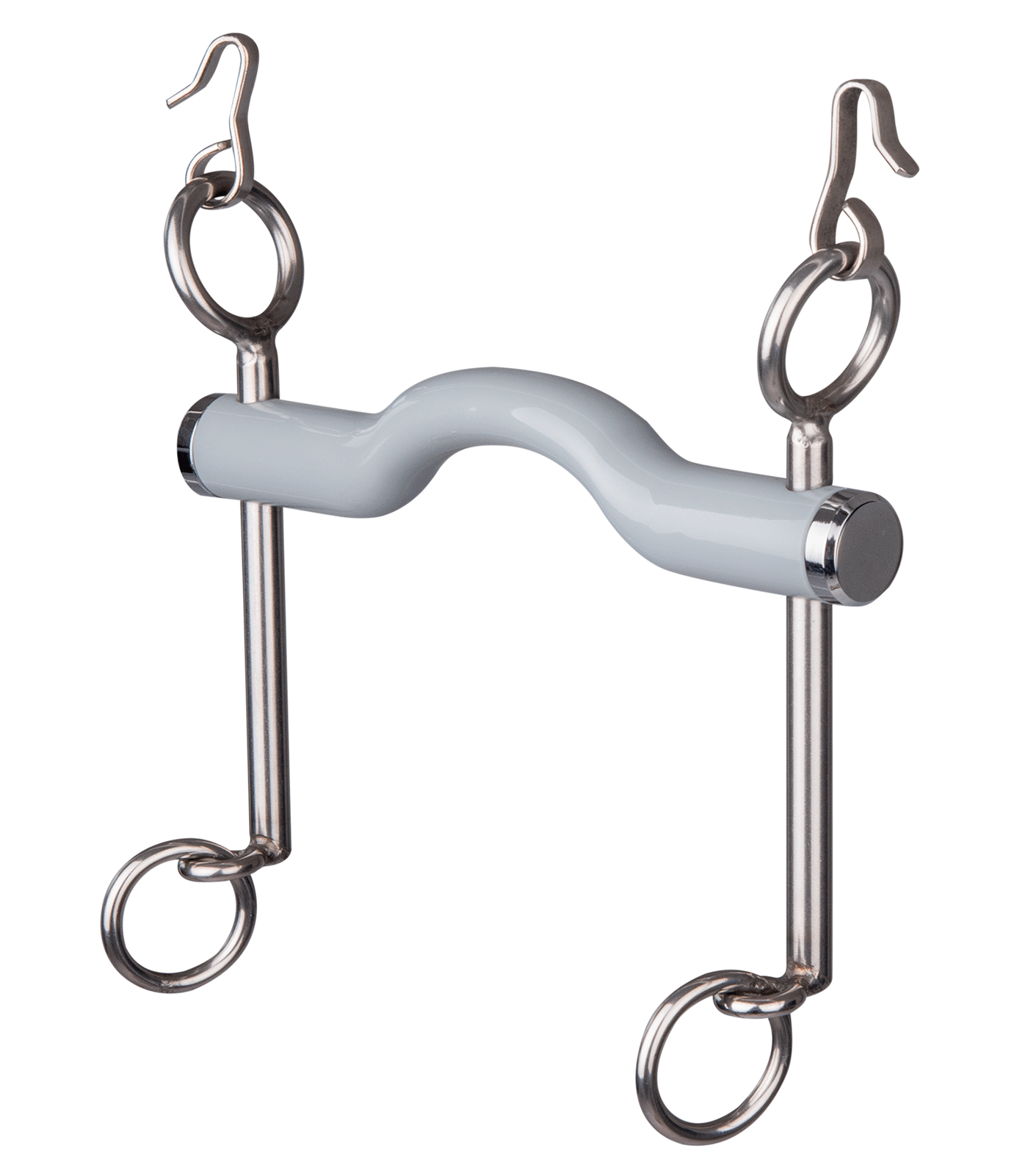 Пластиковый мундштук легко принимается лошадью, независимо от степени твердости и способствует жевательной активности.