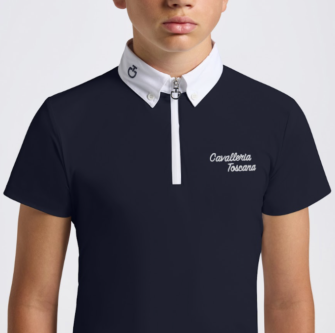 - Блузка-поло детская, для соревнований Jersey Zip, короткий рукав, Cavalleria Toscana