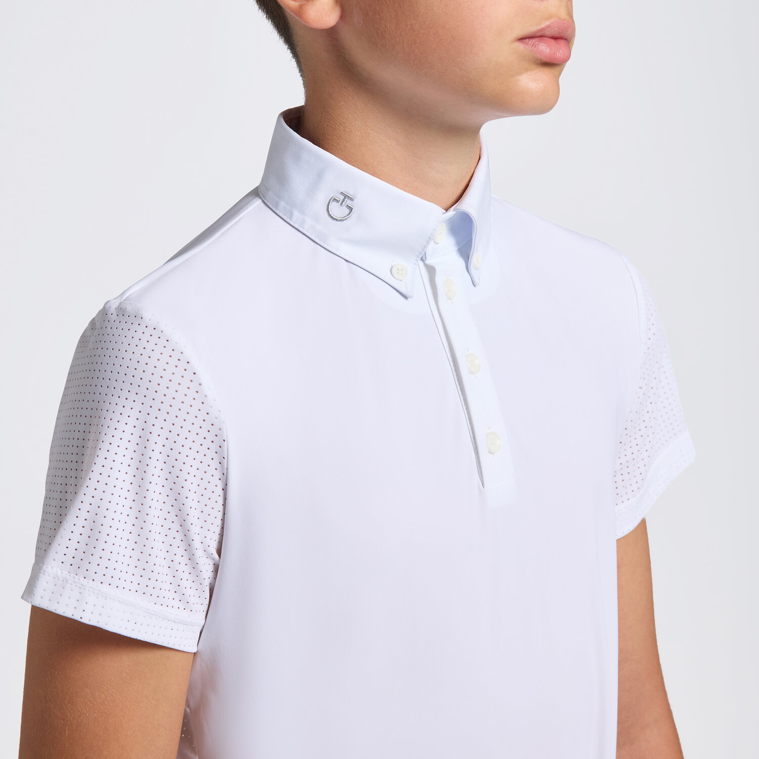 Спортивная рубашка Cavalleria Toscana с коротким рукавом для мальчиков обеспечивает высокую производительность и элегантность. Изготовленная из перфорированного технического трикотажа, она обеспечивает максимальную воздухопроницаемость и комфорт во время тренировок. Дышащие вставки в сочетании с изысканным воротником с вышивкой CT придают дизайну особую изюминку. Потайные пуговицы на воротнике придают модели чистый и утонченный вид.
