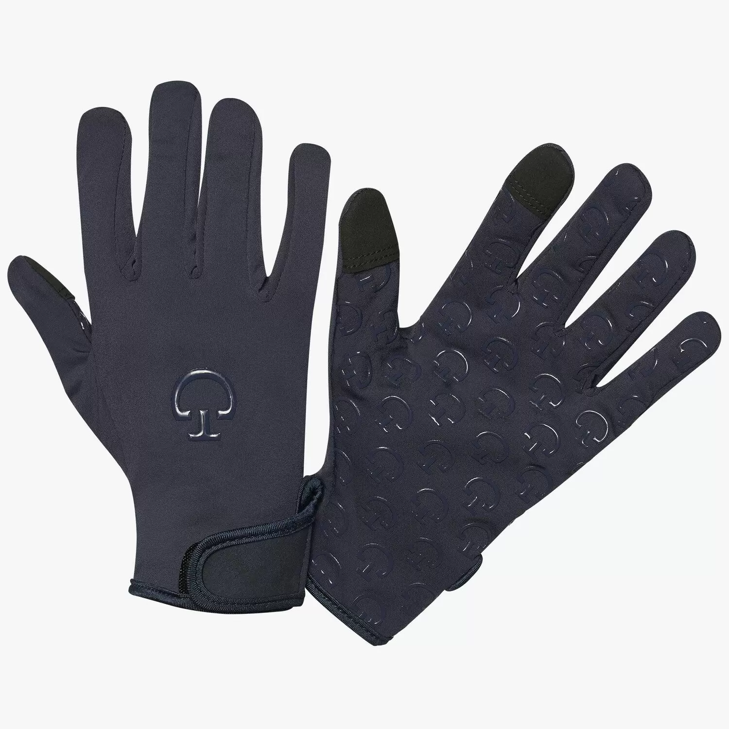 Эти зимние перчатки для верховой езды изготовлены из дышащего и эластичного технического трикотажа, который плотно прилегает к рукам и обладает высокой гибкостью. Они застегиваются на ремешок и имеют флисовую внутреннюю подкладку, которая поддерживает нужную температуру. Силикон на ладони обеспечивает надежную фиксацию поводьев. Перчатки украшены черным логотипом с тиснением на тыльной стороне ладони.