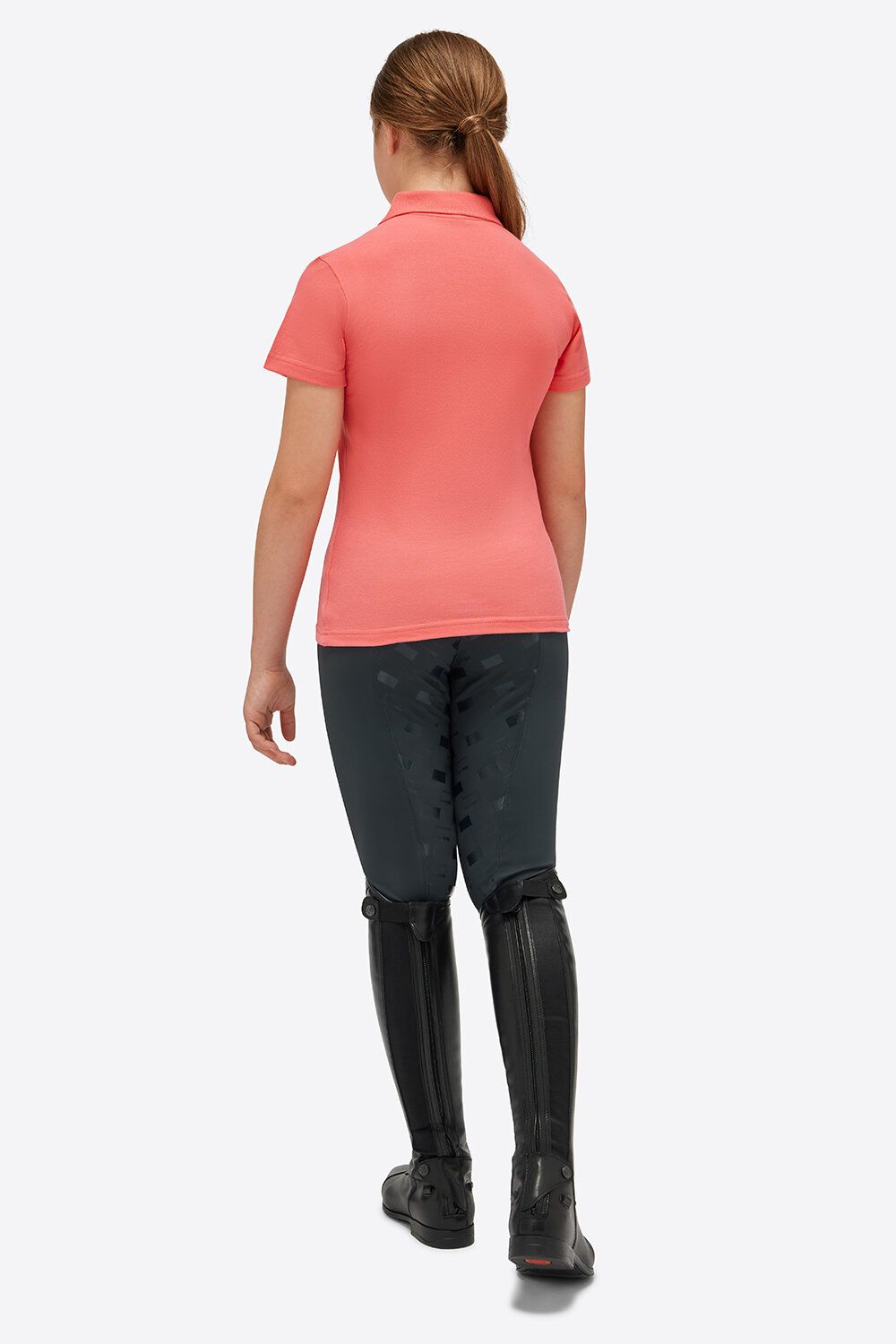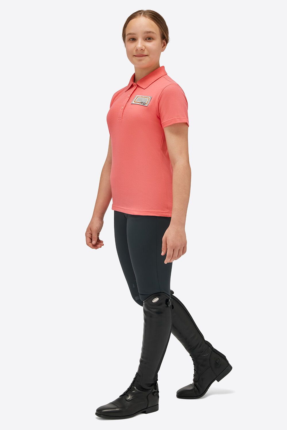 Спортивное поло Rider's Gene для девочек с пуговицами, короткими рукавами и логотипом на груди. Выполнено из эластичного материала, обеспечивая большую воздухопроницаемость.