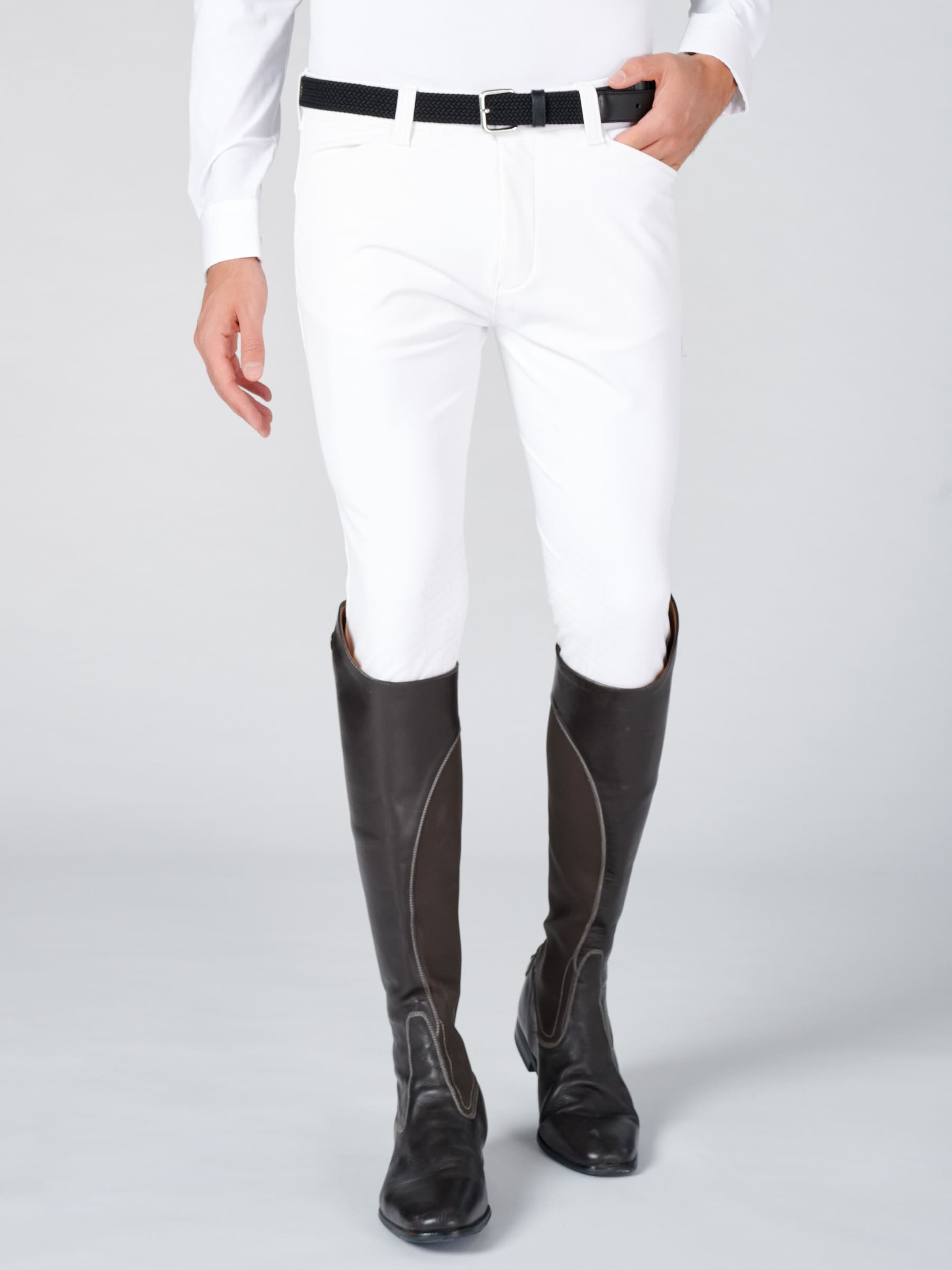 Идеальная посадка. Наш особенный биэластичный материал гарантирует неповторимый комфорт. Коленная лея для безопасной езды, два задних кармана с индивидуальной застежкой на кнопку.