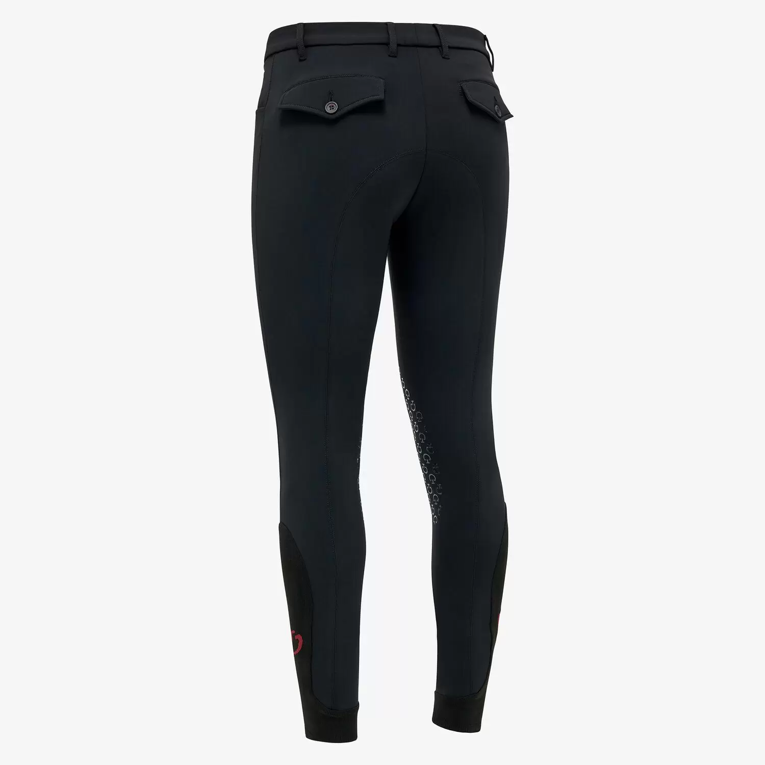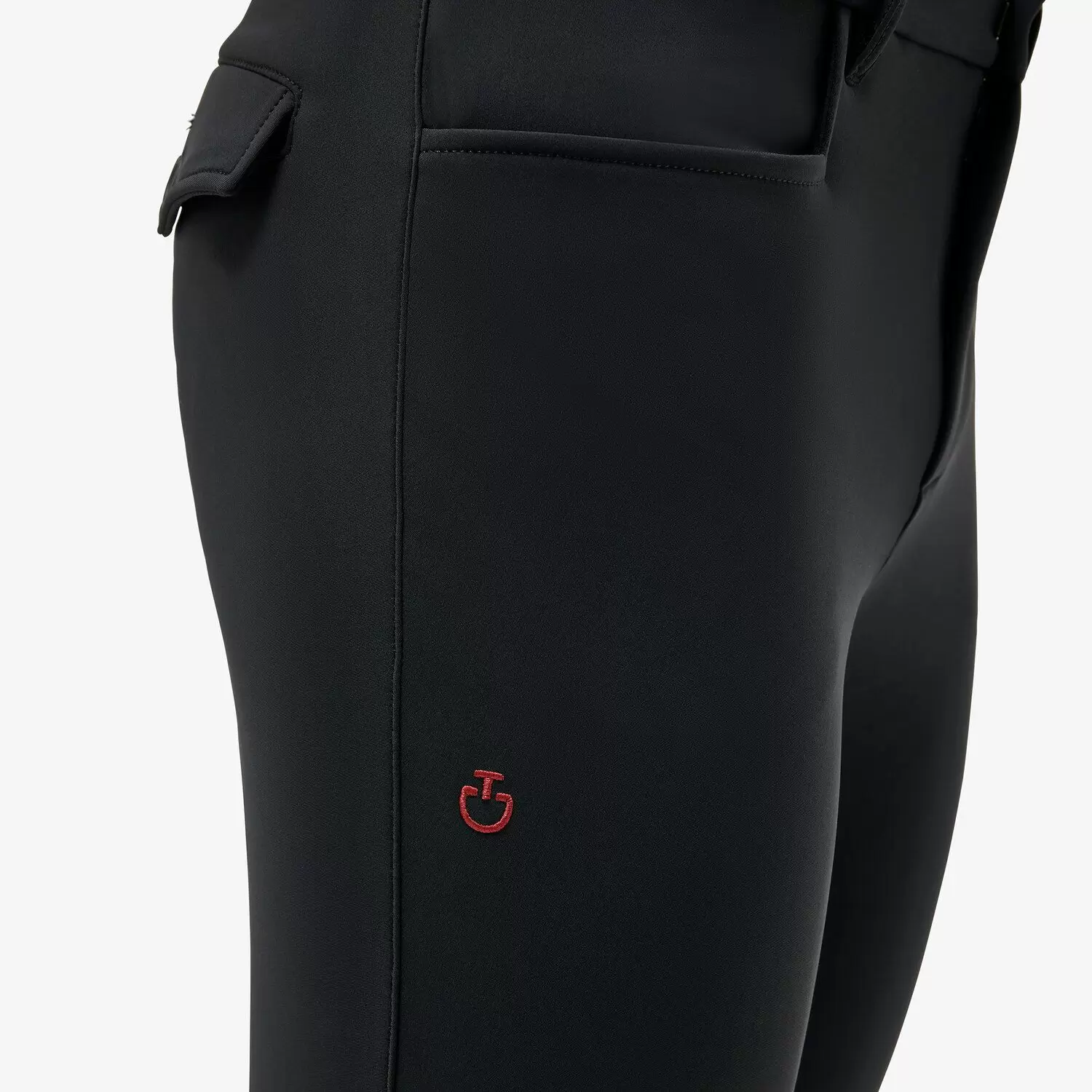 Технический 4-полосный эластичный трикотаж способствует воздухопроницаемости и обеспечивает комфорт во время езды. Прозрачная лея обеспечивает идеальную устойчивость. У модели есть два передних и два задних кармана, образ дополнен застежкой-молнией спереди с пуговицей и небольшим вышитым логотипом на внешней стороне.