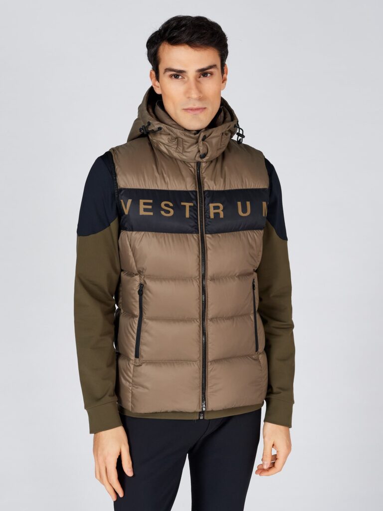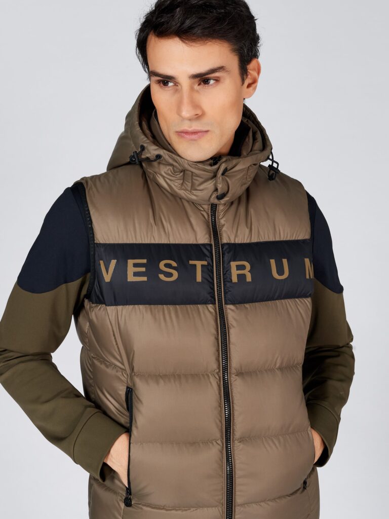 Corio - мягкий мужской жилет из технической ткани, передняя застежка-молния, контрастная надпись Vestrum на груди. Идеально подходящий для тренировок и отдыха, жилет Corio теплый и легкий одновременно, обеспечивает свободу движений. Высокий воротник, карманы на молнии и регулируемый капюшон.