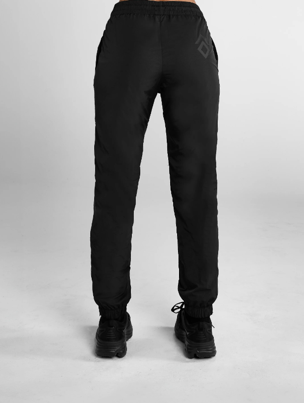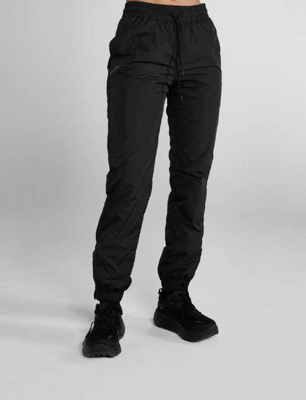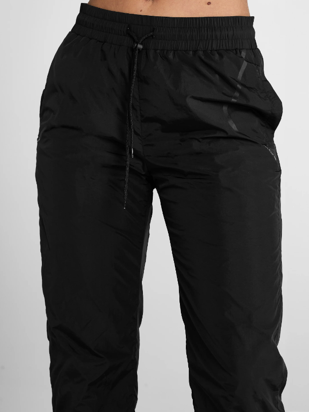 Высококачественная, сверхлегкая, водонепроницаемая ткань с сетчатой подкладкой. Эластичный пояс на шнурках, щиколотки с манжетами и застежками-молниями.