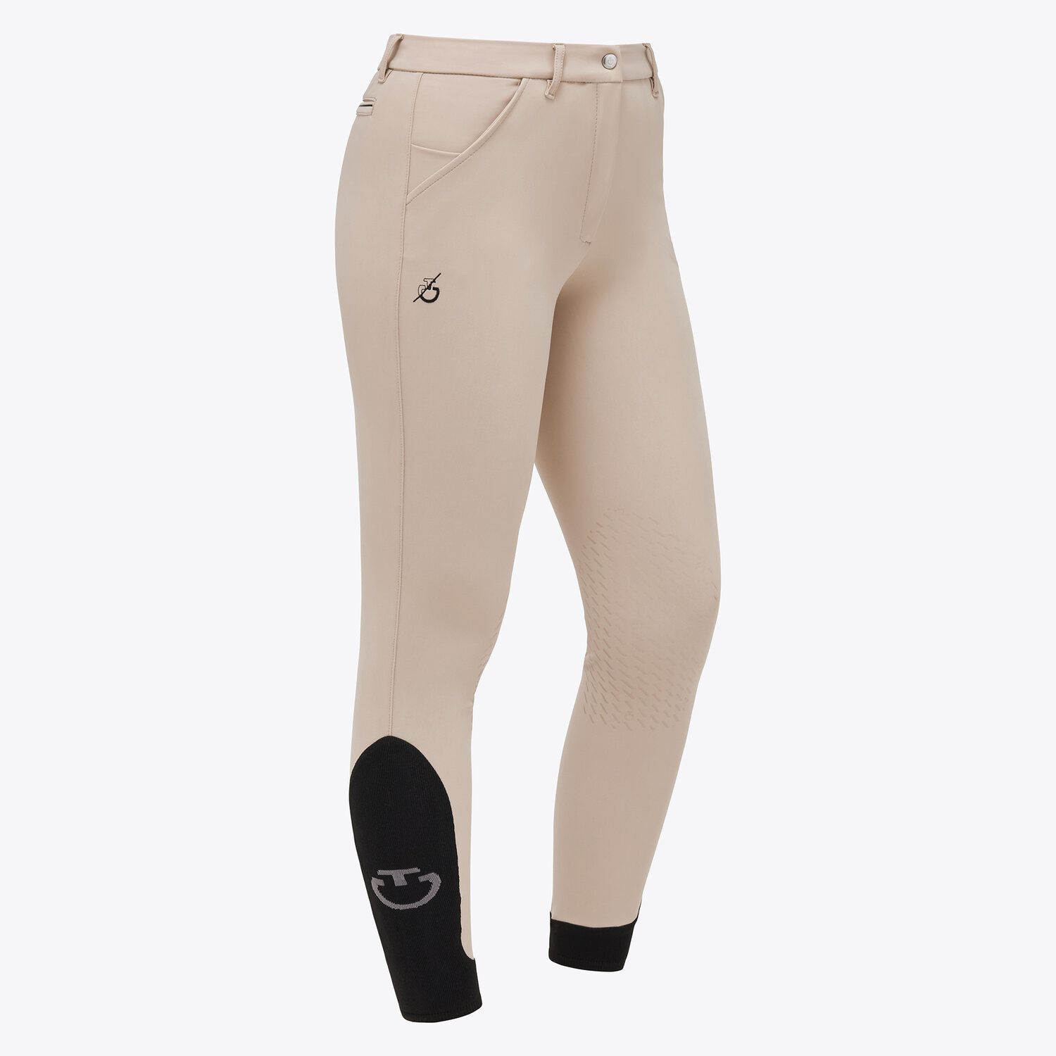 Cavalleria Toscana усовершенствует классические бриджи для верховой езды, чтобы добавить новую одежду в гардероб всадницы, сочетая более современный внешний вид с функциональностью. Идеально облигая тело без ограничений в движениях, эти бриджи выполнены из четырехсторонней стрейч-эластичной ткани обеспечивают абсолютную воздухопроницаемость и свободу движений. Коленная силиконовая лея.