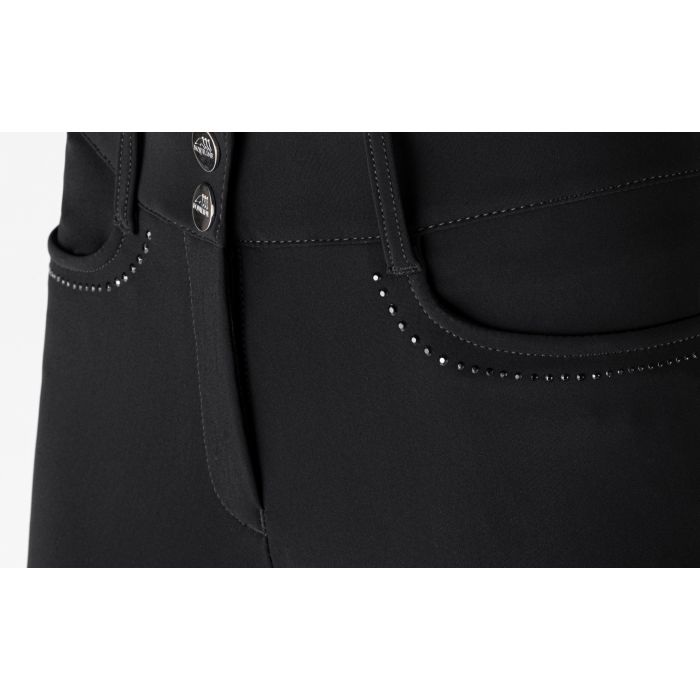 Бриджи для верховой езды Gorgafh с высокой талией изготовлены из материала B-MOVE и обеспечивают оптимальный комфорт. Бриджи изготовлены из эластичной, дышащей и удобной ткани, а передние карманы украшены стразами в тон. Система силиконой леи "Y" обеспечивает повышенную устойчивость, дополненную зимним микрофлисом с внутренней стороны для дополнительного тепла.