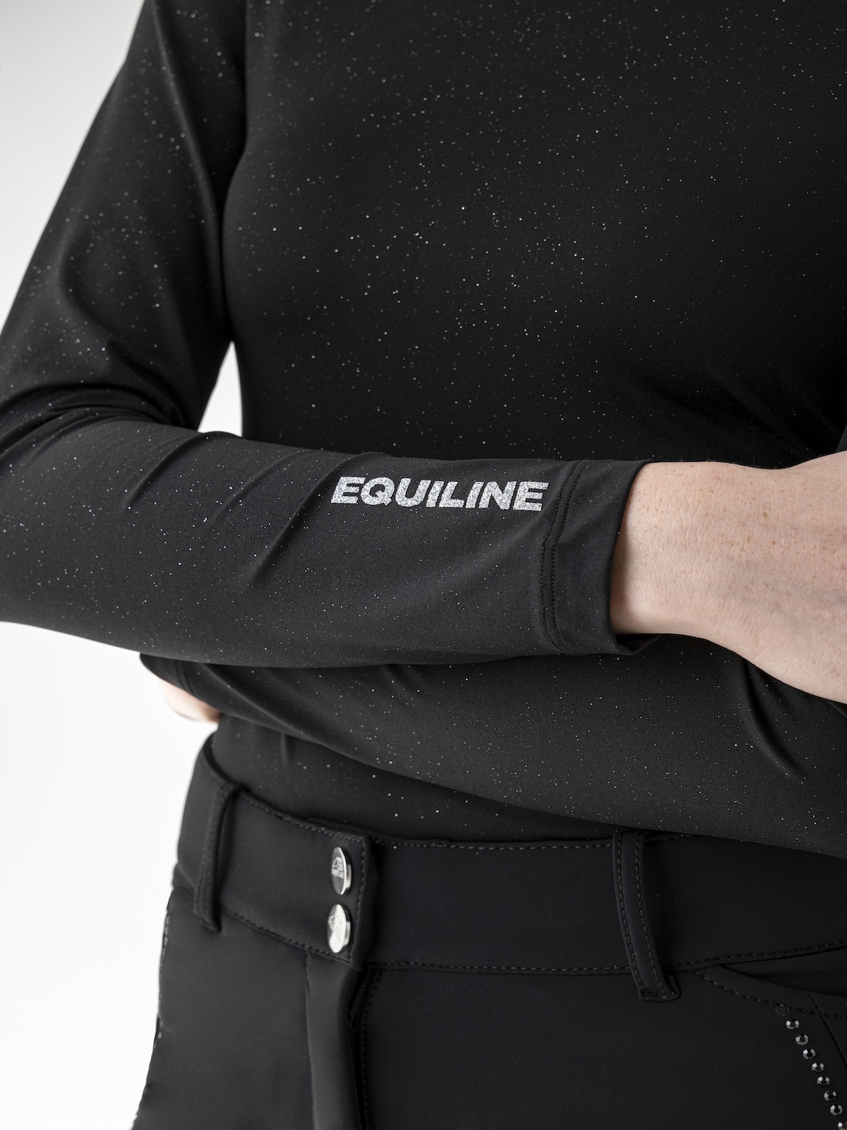 Женская водолазка от Equiline с эффектом второй кожи обеспечивает исключительный комфорт и воздухопроницаемость. Изготовленная из эластичной ткани, она обеспечивает удобную посадку по фигуре. Украшенная серебристым логотипом Equiline на рукаве, она сочетает в себе функциональность и элегантные детали.