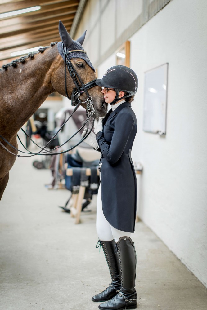 Красивый, элегантный женский фрак. Ювелирная пуговица с орнаментом Laguso, лучшая свобода движений с оптимальной посадкой.