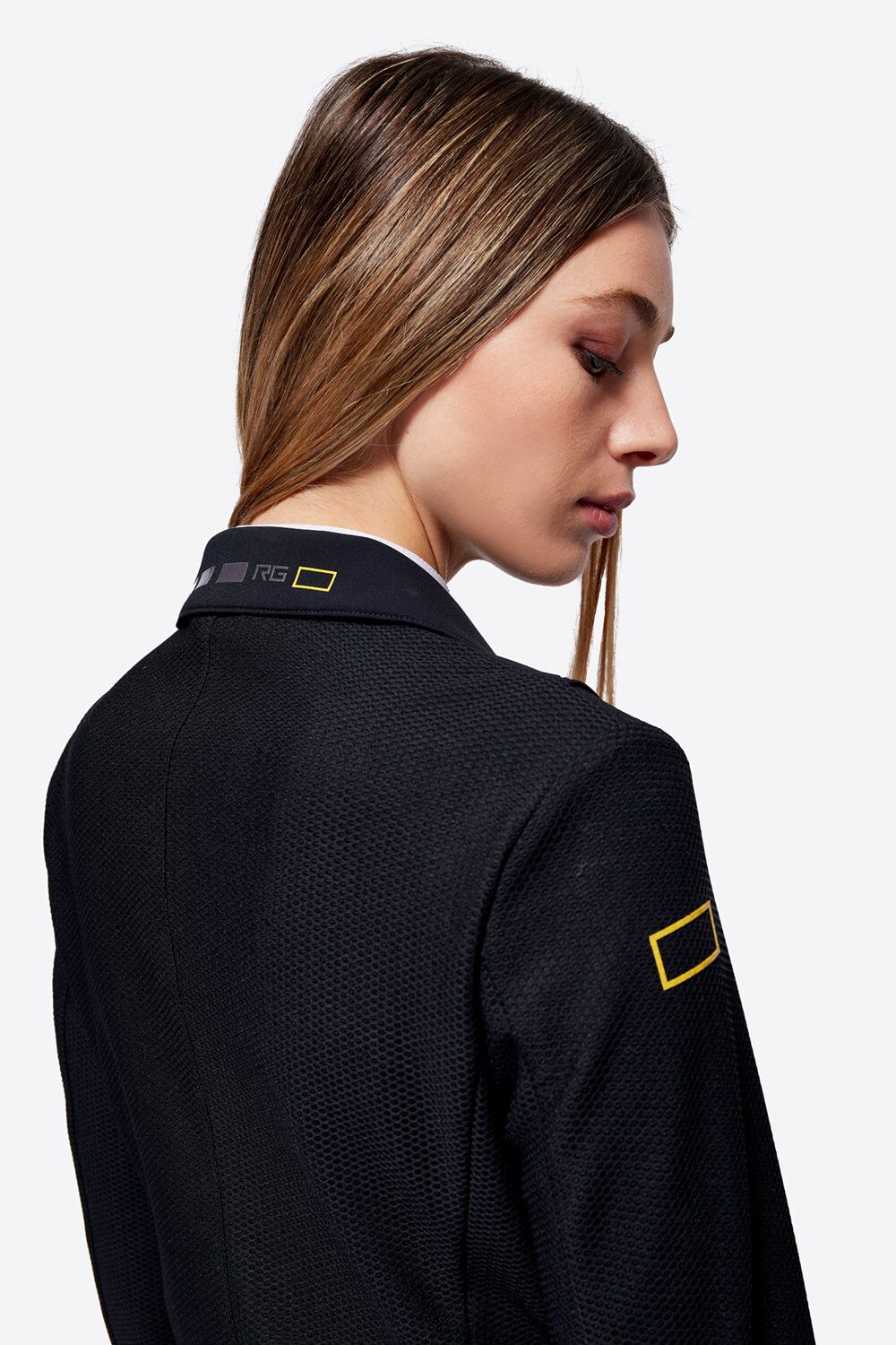 Модель по-настоящему динамичная: она приспосабливается к вашему телу и обеспечивает свободу движений благодаря инновационному сочетанию трикотажа и сетчатому материалу. Воротник с лацканами и застежкой на молнию спереди с логотипом RG на правом рукаве.