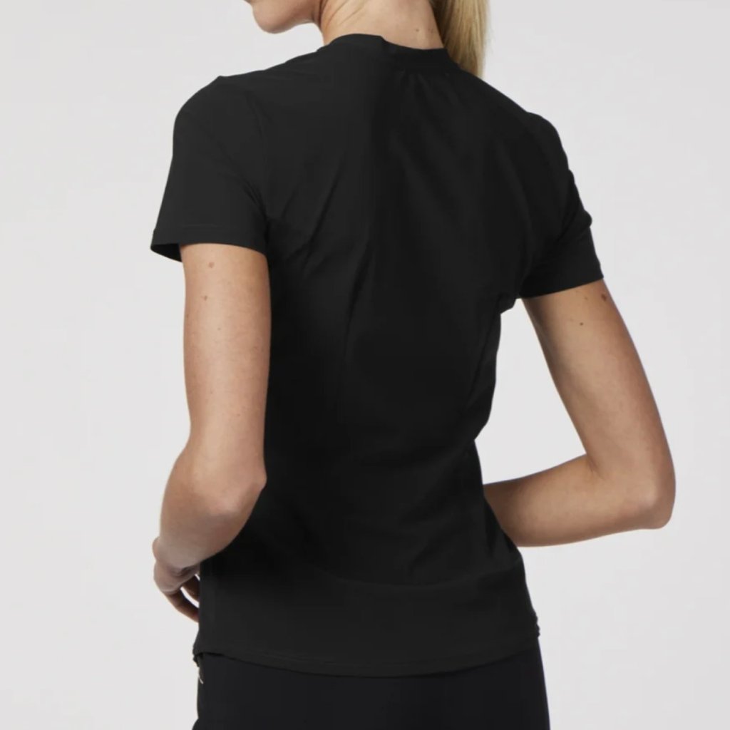 Футболка выполнена из сверхтонкой стрейчевой ткани, которая обеспечивает надлежащую воздухопроницаемость благодаря техническим характеристикам ткани и перфорированным вставкам. Футболка украшена аппликацией с рисунком по центру.