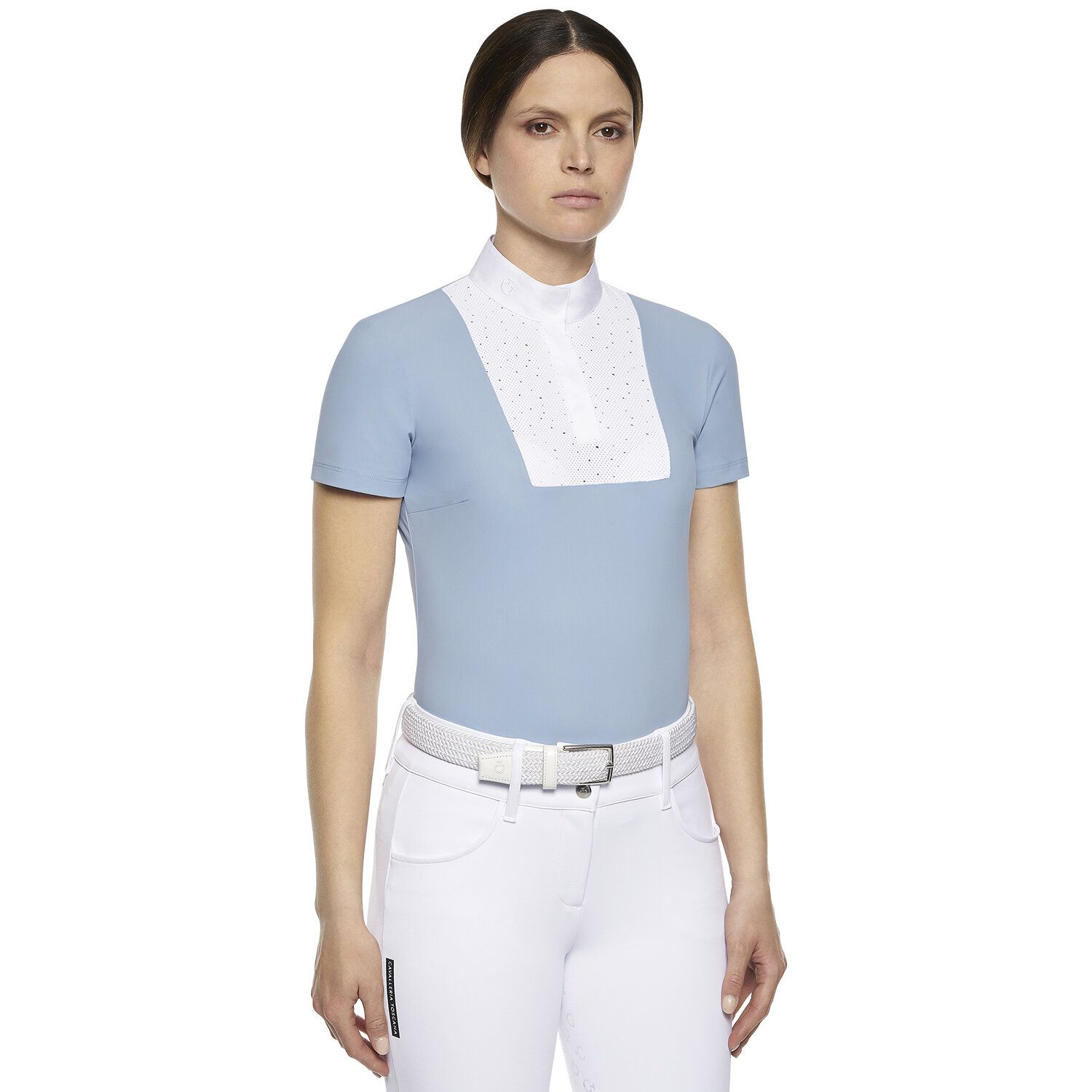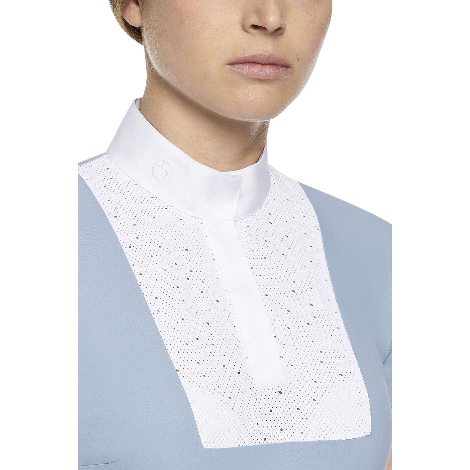 Технический трикотаж этой рубашки-поло сочетает в себе комфорт, элегантность и функциональность. Поскольку он воздухопроницаемый и быстро сохнет, он идеально подходит для соревнований. Кроме того, ткань этой рубашки-поло гарантирует поддержание идеальной температуры тела в течение дня. Рубашка с воротником-стойкой из белого поплина, украшенным вышитым логотипом CT.