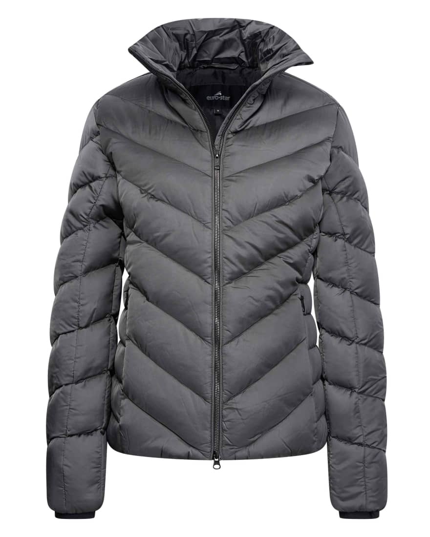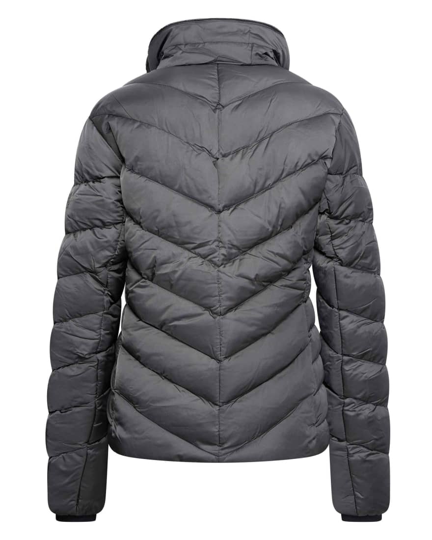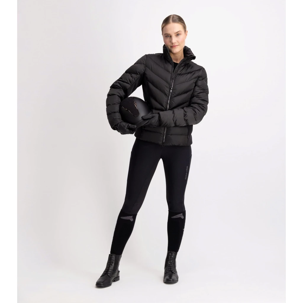 Стеганая куртка с чистыми и элегантными линиями, подчеркивающими фигуру. Ткань с перламутровым отблеском. Двусторонняя молния с ветроуловителем. Два кармана на молнии спереди. Лента со стразами вдоль линии шва на воротнике, придающая легкое мерцание. Логотип со стразами на левой руке. Внутренние манжеты с отверстиями для больших пальцев. Принт с логотипом в тон на манжете.
