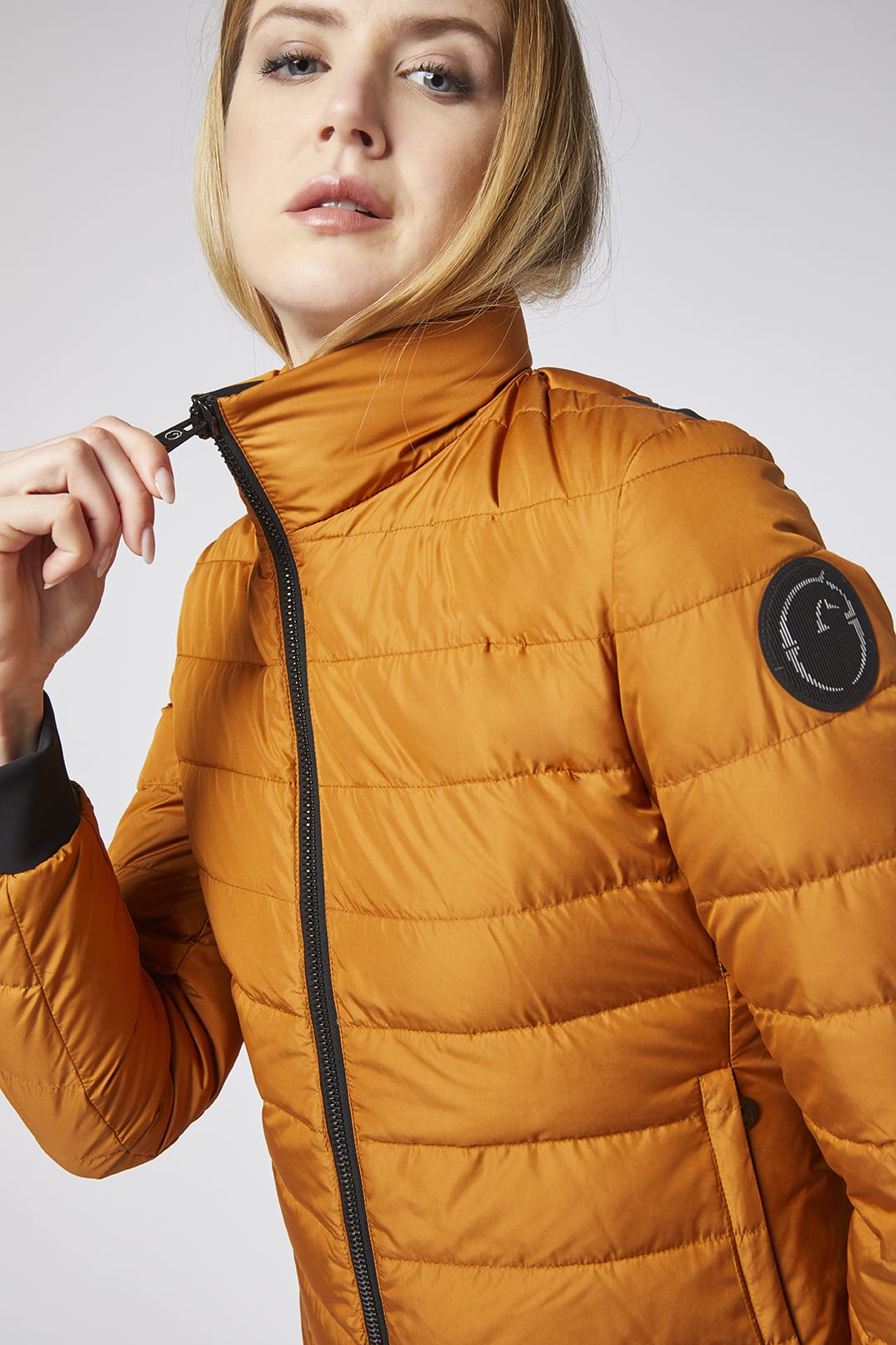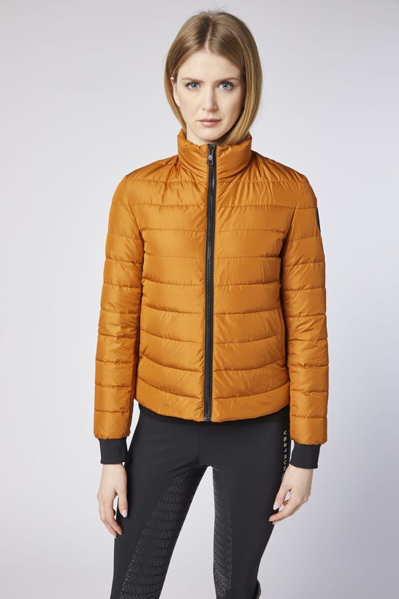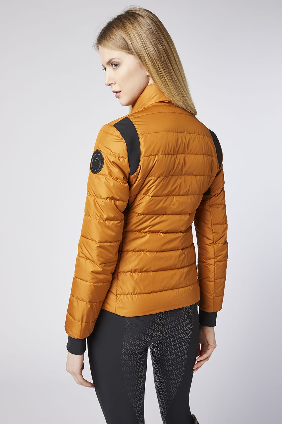 Женский пуховик Laudes имеет застежку на молнию спереди, боковые карманы и черную нашивкой с логотипом Vestrum на левом плече.