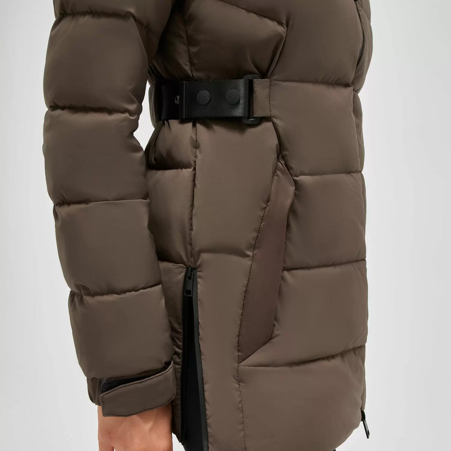 Выразите свою элегантность даже в самые холодные дни с помощью этого длинного пуховика. Капюшон и пояс сочетают функциональность и стиль, а длина обеспечивает полное сохранение тепла.