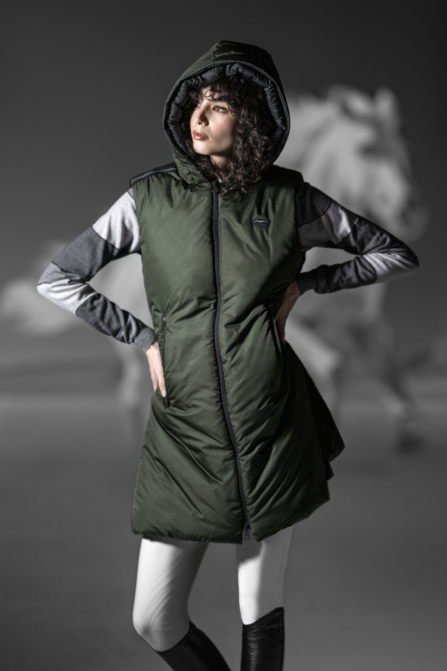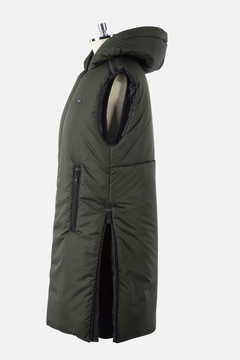Женская сверхлегкая удлиненная жилетка отличается универсальностью и практичностью. Эта модель весом 180 г с подкладкой “ZERO DOWN”* имеет большие боковые вырезы на молниях, что позволяет носить ее в седле. Черные детали куртки на плечах и застежках-молниях придают изысканный вид ее функциональному дизайну.