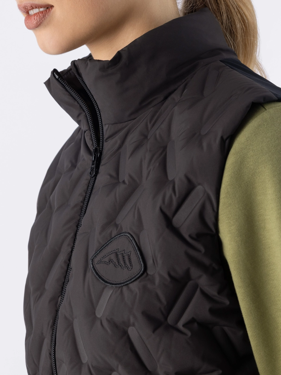 Легкий и теплый женский жилет со стеганой передней частью, задняя часть из технической ткани и подкладкой из ультралегкого пуха. Комфорт и стиль на каждый день.