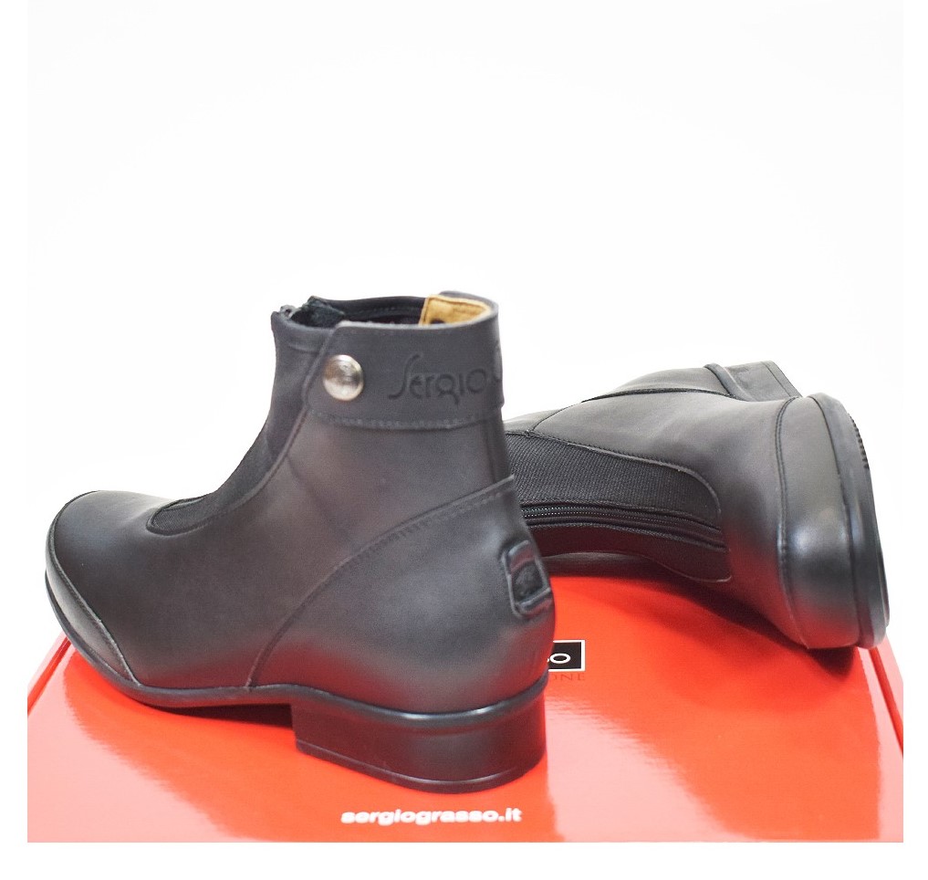 Идеальные ботинки для тренировок от Sergio Grasso из мягкой телячьей кожи. Оснащены передней молнией, эластичной вставкой спереди и фиксатором для шпор.