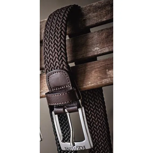 Плетеный эластичный ремень с металлической пряжкой и цинковым покрытием, логотипом Equiline, кожаныйе наконечники.