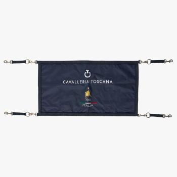 Изготовлена из водоотталкивающего материала, который легко чистится. Боковые карабины позволяют прицепить ее к деннику. Украшена белым логотипом СТ на лицевой стороне, и логотипом FISE.